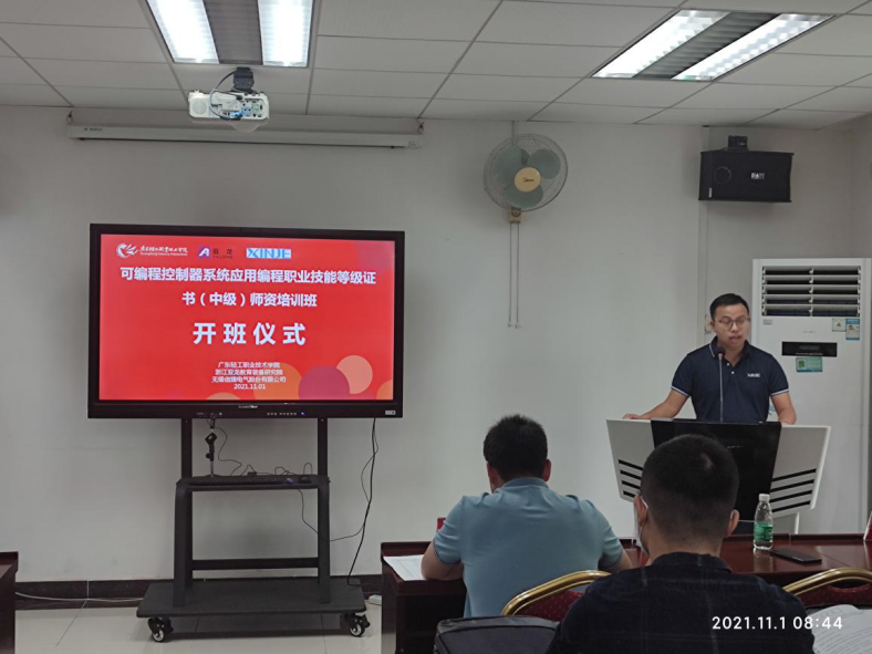 11月1日上午,由我们与亚龙智能装备集团股份有限公司、无锡信捷电气股份有限公司联合举办的“可编程控制器系统应用编程职业技能等级证书(中级)师资培训班”正式开班。亚龙智能装备集团股份有限公司华南区总监陈少明、无锡信捷电气股份有限公司华南区总监蓝国亮、太阳集团tyc5997党总支书记宋霞、副院长苑振国、电气教研室主任刘鲁、副主任王芳楷、浙江亚龙教育装备研究院和无锡信捷电气股份有限公司讲师团和考评员、以及来自省内11所中高职院校共40名电气领域骨干教师参加了此次开班仪式。