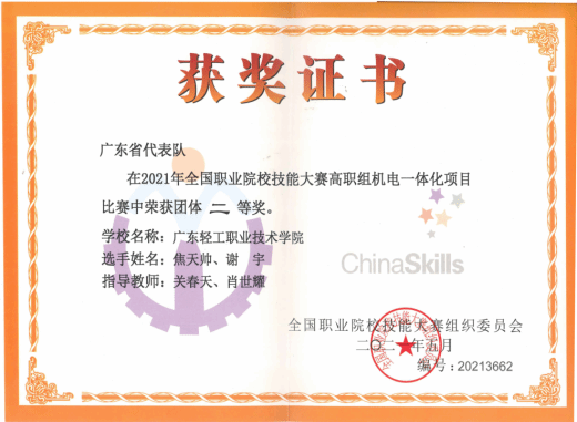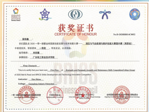 2020年“一带一路”技术创新大赛一等奖 2021年全国职业院校技能大赛高职组二等奖