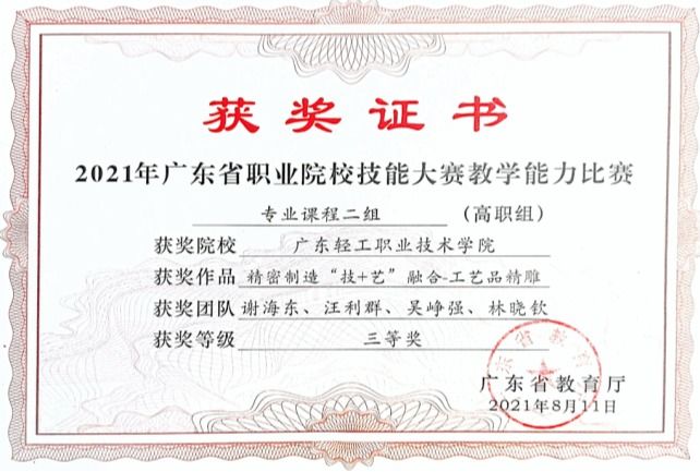 2020年广东省教育教学成果奖(职业教育) 2021年广东省高职院校教学能力比赛获奖