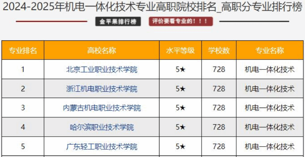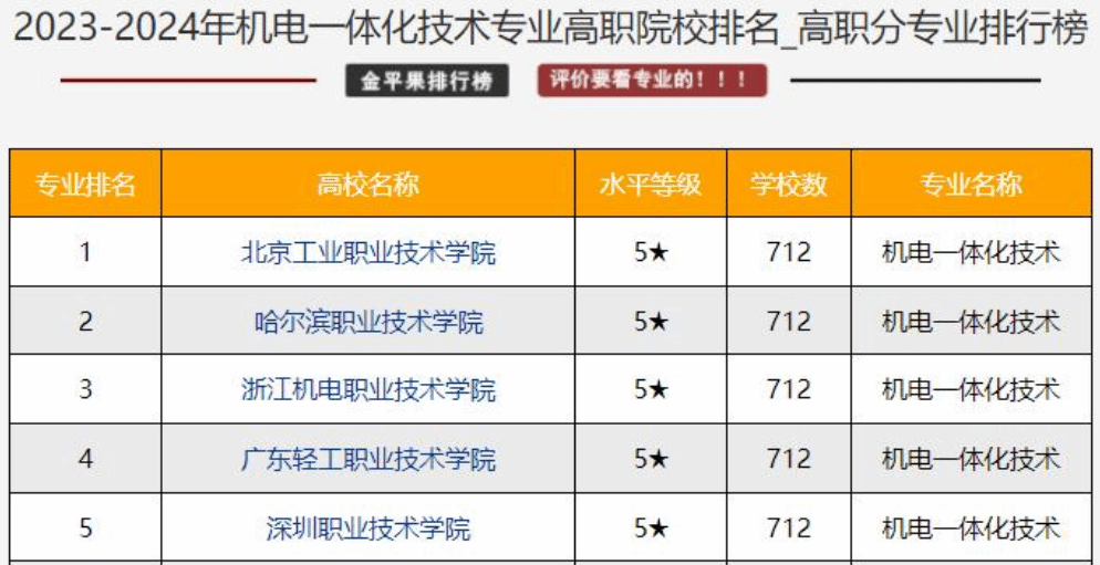 在“金平果”全国高职机电一体化技术专业竞争力排行榜上连续三年位列全国前五。