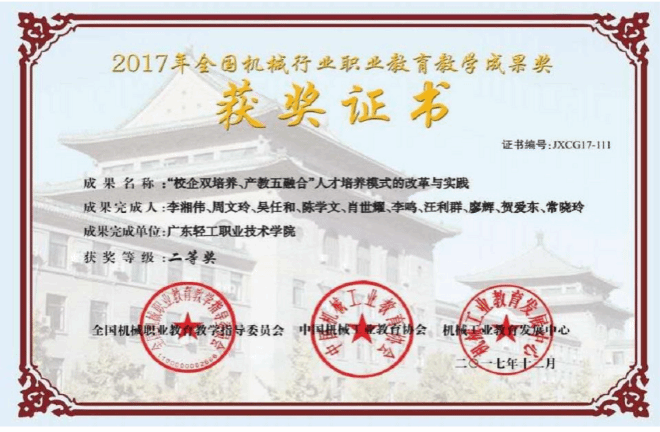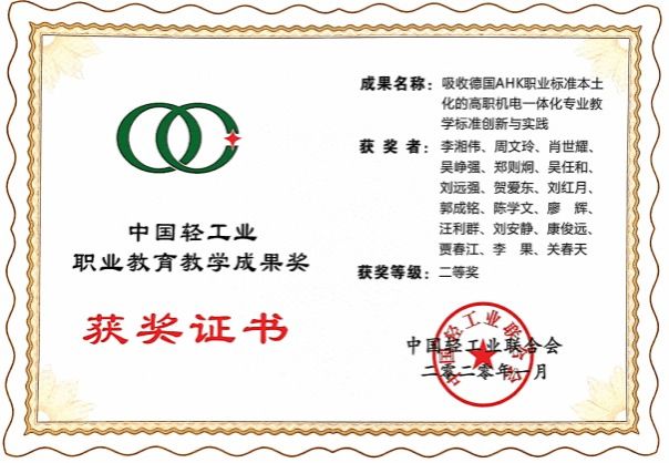 2017年全国机械行业职业教育教学成果奖 2022中国轻工业职业教育教学成果奖