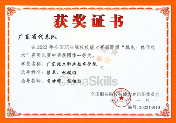 本专业拥有专任教师10名(其中教授2名,副教授6名),省级教学团队(机电专业校企协同教学团队)1个,南粤优秀教师1名,省级技术能手2名;全国机械行业职业教育教学成果二等奖1项,中国轻工业职业教育教学成果二等奖1项,广东省教育教学成果一等奖(职业教育)1项。