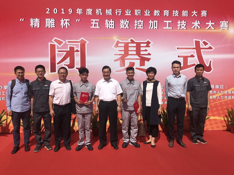 10月31至11月2日, 2019年全国机械行业职业院校技能大赛-“精雕杯”五轴数控加工技术赛项在东莞精雕职业培训第二学校举行。经过紧张激烈的角逐,我们数控加工技术专业学生李祖辉、郑嘉顺组成的一队获得二等奖,指导老师:林晓钦、余尚行。
