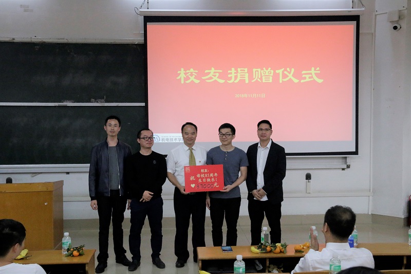 当天上午,我们在教学楼4201开展报告会,会议由分团委书记谢建周主持,贺爱东作主讲,他从了解学院、产教融合办学、改革中的学院、校友共助学院发展多方面介绍了我们的发展情况。随后,我们举行了校友捐赠仪式,校友郑德章、黄卓晔、陈妃兴等多位校友捐款支持我们学院建设,由学校副校长廖俊杰为我们接受捐赠。最后,辛胜凯代表校友上台发言,他感恩母校的培育之情,同时也感慨学校发展之迅速,并表示会一如既往的支持学院的发展,希望母校越来越好。会后,在贺爱东副院长的带领下,校友们参观了我们的精密制造实训基地和智能制造产教工业园,先进的机器设备、日益完善的实训环境使校友们大为惊叹,为学院发展速度点赞。