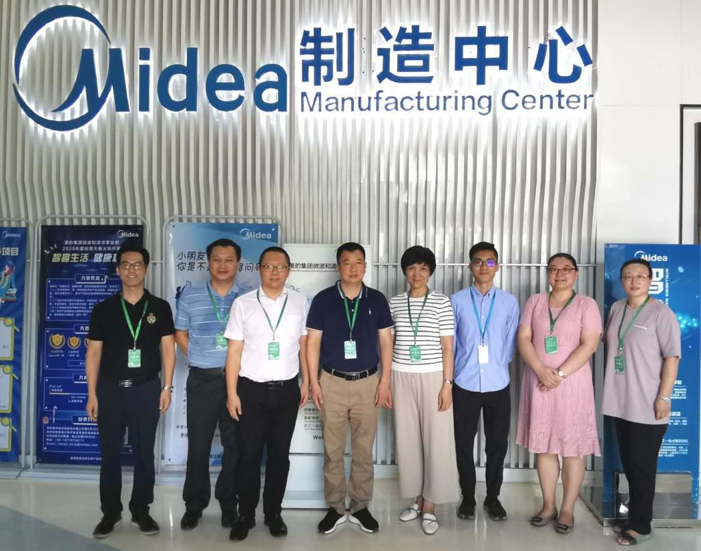 2020年7月29日,太阳集团tyc5997行政负责人张友能、党总支书记宋霞带队,学院党政领导班子成员、教研室主任等一行7人赴美的微波和清洁事业部调研交流,美的公司经理曹丰铧热情接待了我们。