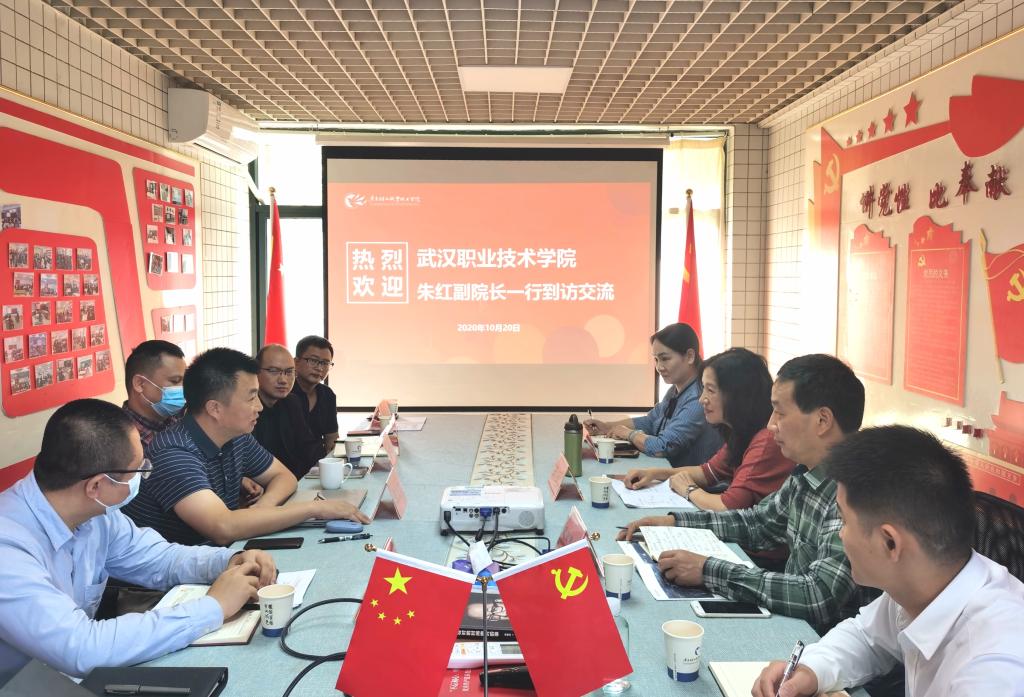 10月20日上午,武汉职业技术学院机电工程学院副院长朱红一行三人到太阳集团tyc5997考察交流。学院行政负责人张友能在南海校区学院党员活动室接待了来访客人,双方就专业建设、实训室建设、校企合作、产教融合等方面的经验做法进行深入交流和探讨。