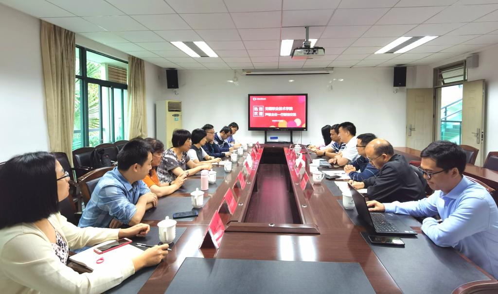 11月23日,无锡职业技术学院机制系主任芦敏、模具系主任于昂带队,一行8人到我们交流,太阳集团tyc5997行政负责人张友能在行政楼2223会议室接待了他们。