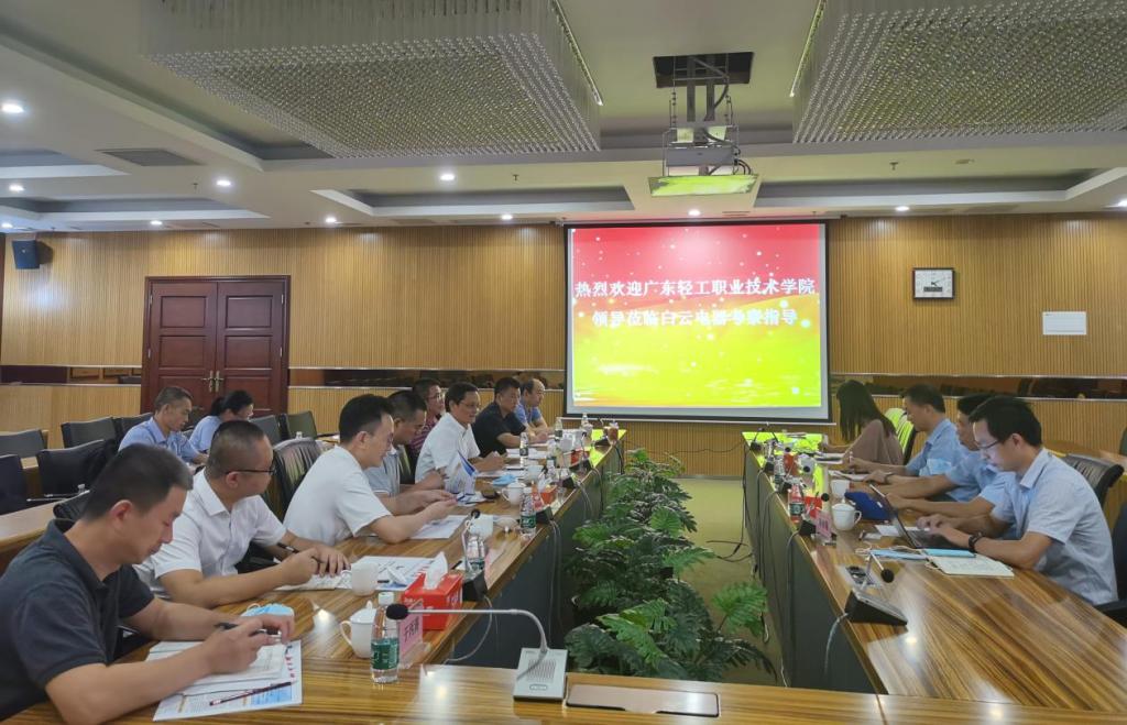8月13日下午,党委书记杜安国带领太阳集团tyc5997调研组一行赴广州白云电器设备股份有限公司(以下简称“白云电器”)深入调研并商洽产教融合事宜。白云电器党委书记李伦强,副书记李东瑞,白云电器胡德昌等公司领导参加洽谈。