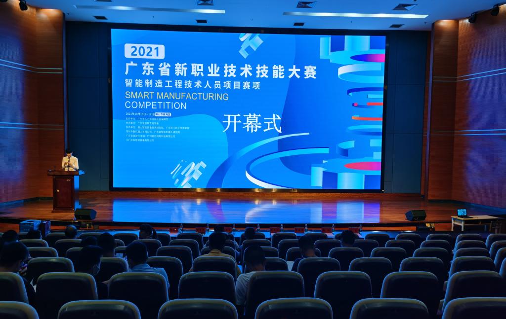 刘奕华发言,他表示,此次大赛为省一类职业技能大赛,是广东省首届新职业技术技能大赛,意义重大!希望通过竞赛提升全民数字技能水平、促进人才培养、激发人才创新创造活力,培养更多高素质技术技能人才、能工巧匠、大国工匠,为加快构建现代产业体系、推动经济高质量发展提供有力人才保障。他预祝各参赛队员获得优异成绩,并宣布2021广东省新职业技术——智能制造工程技术项目技能大赛开幕!