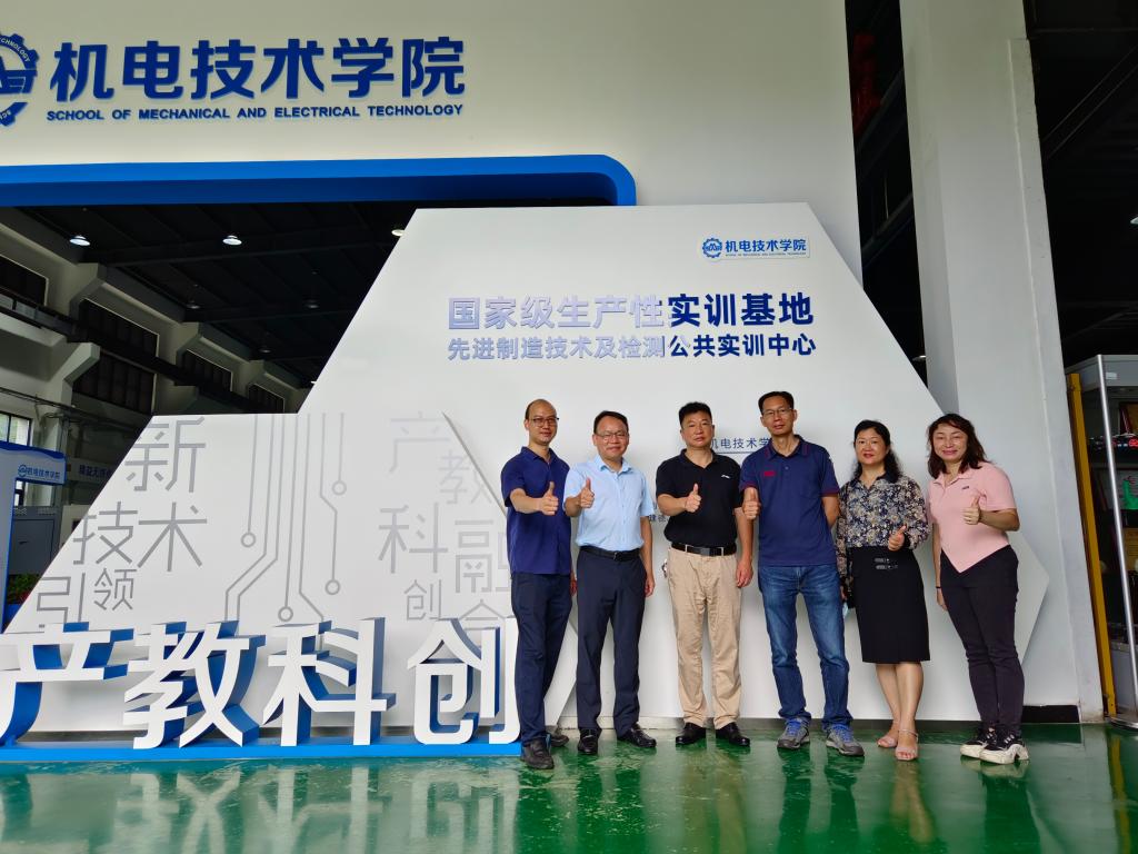 为推动近期我们到广东东亚电器有限公司交流达成的初步合作共识落地落实,8月20日上午,广东东亚电器有限公司副厂长陈妃聪一行回访我们,学院院长张友能带领回访客人先后参观了我们先进制造实训基地、工业机器人实训基地、智能装备技术实训基地。陈妃聪对我们先进的实训设备、一流的实训环境以及六个文化建设等表示肯定和赞扬。