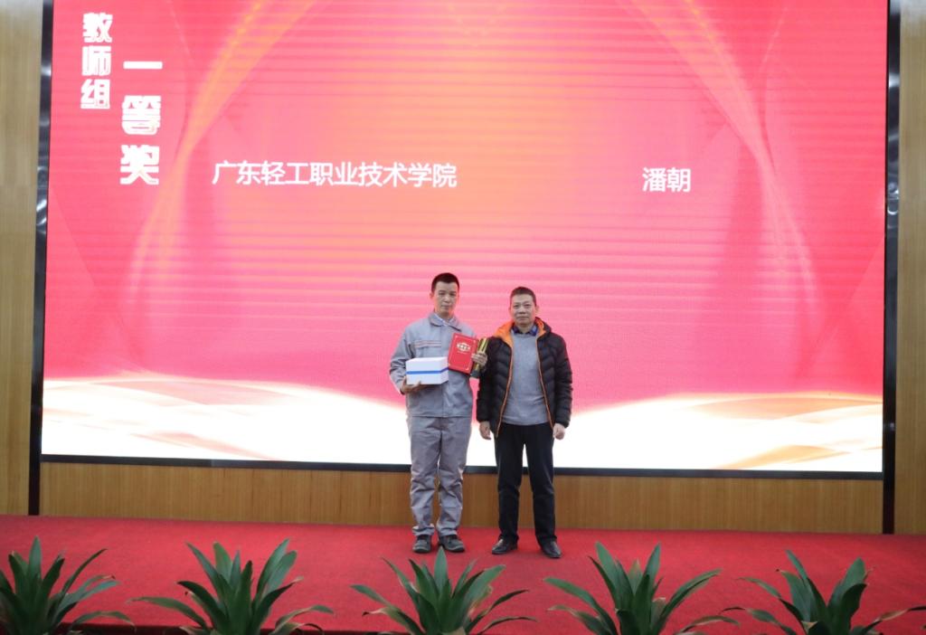 2023年12月21-23日由机械工业教育发展中心主办,北京精雕集团承办的2023年度机械行业职业教育技能大赛“精雕杯”快速制造与五轴精密加工技术赛项在北京精雕集团东莞第二培训学校举行,比赛设置学生组团体赛和教师个人赛,来自全国56所院校的百余名选手同台飙技。经过白热化角逐,潘朝老师以大赛第一名的成绩获得本次教师个人赛唯一一个一等奖;由潘朝老师指导的黎柯清、蔡明泰获得学生组三等奖。