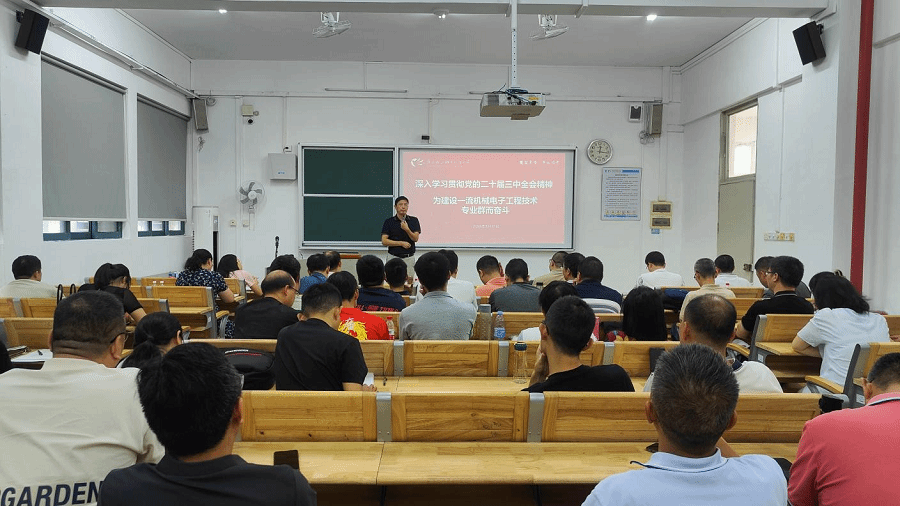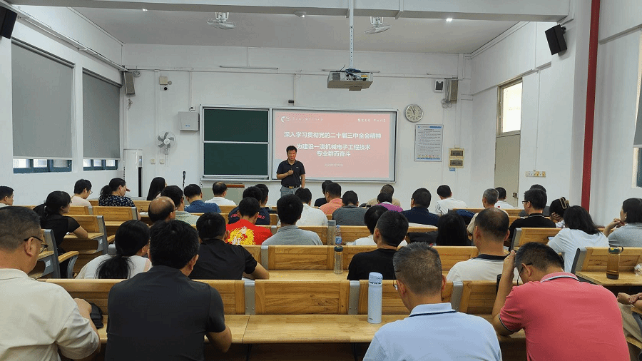 会议紧密围绕“学习贯彻党的二十届三中全会精神、办高水平本科大学”这一主题展开深入研讨。院长张友能以“锚定高质量 阔步新征程”为题,为全体教职工说机械电子工程技术专业群。他着重强调了学院在文化育人和实践育人融合创新方面的积极探索与实践,战略上,专注于 “风雅机电人” 高质量育人品牌,通过六个文化全场景融入育人,笃定干好 “立德”“树人” 这两件事;战术上,紧密围绕国家战略需求和产业发展趋势,聚焦工业母机生态产业链,以“五金”建设为抓手,聚焦创新型高层次高质量人才培养,重点做好专业人才培养所需的软硬件资源建设,充分发挥行业企业人才培养的主阵地作用,以岗位能力达标为建设核心,深化改革人才培养方式和人才评测评价方式,加强国际交流与合作,培养学生的国际视野和跨文化交流能力。夯实学生的终身学习基础,与新质生产力对高层次技术技能人才的需求同频共振。同时,他勉励全体教职工要坚持学习、自我提升,因势而变、主动拥抱发展,迅速行动,齐心协力向着办学能力高水平、产教融合高质量的目标不断奋进!