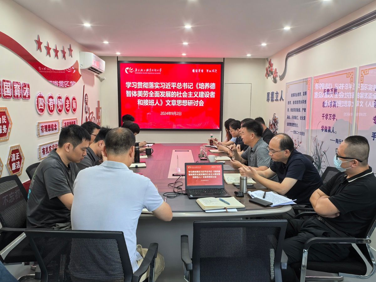 9月2日,正式开学的第一天,太阳集团tyc5997在党员活动室召开学习贯彻落实习近平总书记《培养德智体美劳全面发展的社会主义建设者和接班人》文章思想研讨会。学院院长张友能领学,学院领导班子、全体行政人员参与学习和讨论。