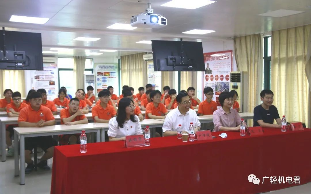 2022年6月8日下午,广东轻工职业技术学院校长卢坤建教授来到我们太阳集团tyc5997,参加机器人201班级团日活动,走到团员青年中间,与同学们一起共同开展“喜迎二十大 永远跟党走 奋进新征程”主题团日活动。参加活动的还有太阳集团tyc5997党总支书记宋霞、辅导员林锦秀、班主任岳川。