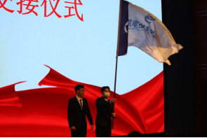 大会即将结束,范全成将院旗转交给新一届团委委员代表手里。换届之际,新一届学生干部将砥砺前行,为组织、为学院发光发热!