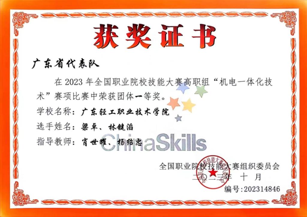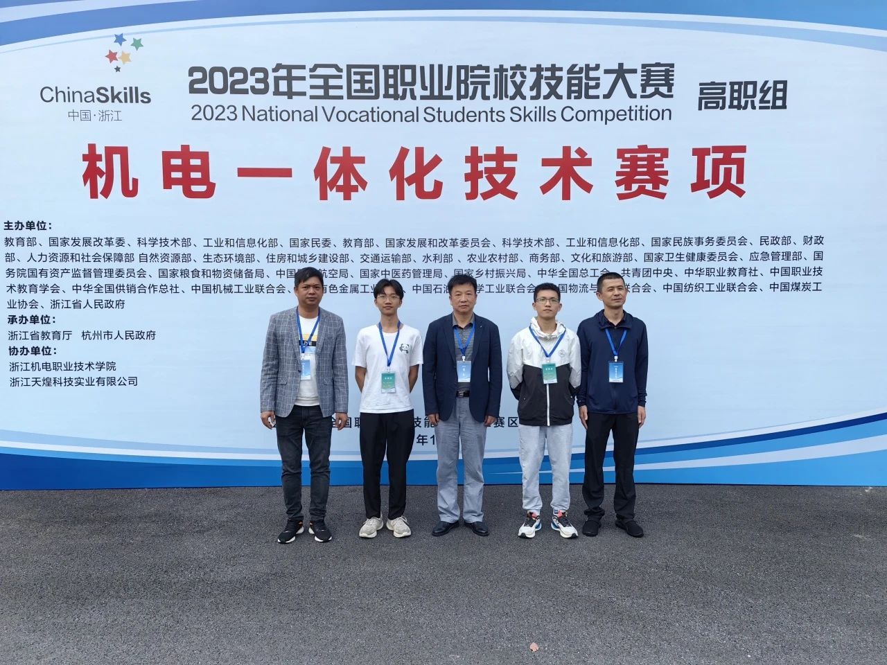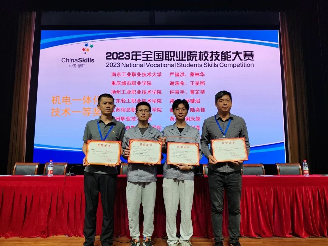 10月14日至17日,全国职业院校技能大赛(高职组)机电一体化技术赛项在浙江杭州举行,来自全国28个省份共79支队伍参赛。我们太阳集团tyc5997机电203梁卓和机电204林键滔组成的团队,经过激烈比拼,最终荣获国赛一等奖,这已是我们两年蝉联该赛项一等奖。本次参赛队伍由机电学院院长张友能领队,肖世耀、杨绍忠担任指导老师。