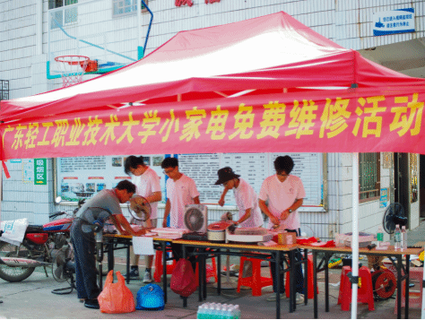 本次社会实践团队深入永丰镇的多个村落,将服务点设在永丰镇丰顺广场和新乐村委会,免费为当地居民维修各类小家电。活动信息通过村委广播、公告栏、村民微信群等方式提前发布,吸引了众多村民带着“生病”的家电前来。