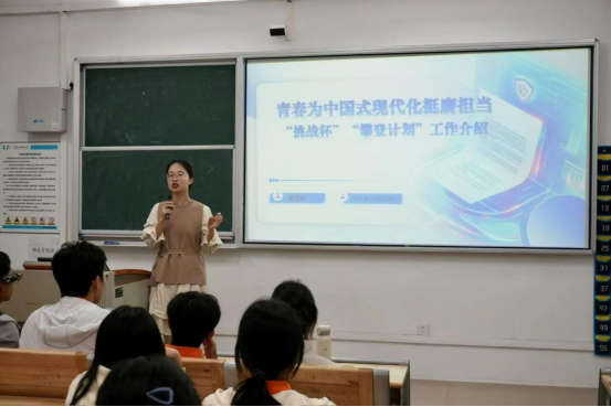随后,学院团委书记陈思佳详细解读挑战杯赛事相关内容。她介绍,挑战杯赛事分为“大挑”(全国大学生课外学术科技作品竞赛)与“小挑”(中国大学生创业计划竞赛)两大类别,采用每两年轮流举办的模式,赛事流程需依次通过校赛、省赛、国赛三个进阶阶段。