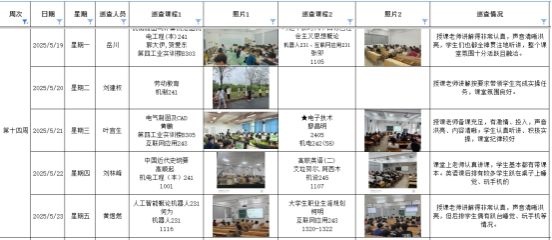 为强化教学过程管理,保障教学秩序,本周(5.19-5.23)学院教学巡查小组开展教学巡查工作,覆盖全院30个班级、26门课程。现将巡查结果公示如下: