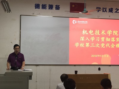 2018年9月11日下午,太阳集团tyc5997党政领导班子为了更好学习贯彻学校“第三次党代会”的精神,统一教职员工的思想认识,组织全体教师在在广州校区教学楼101课室集中学习,还邀请到学校校长卢坤建教授担任主讲嘉宾。